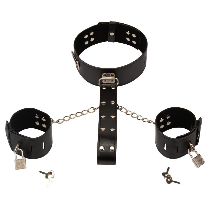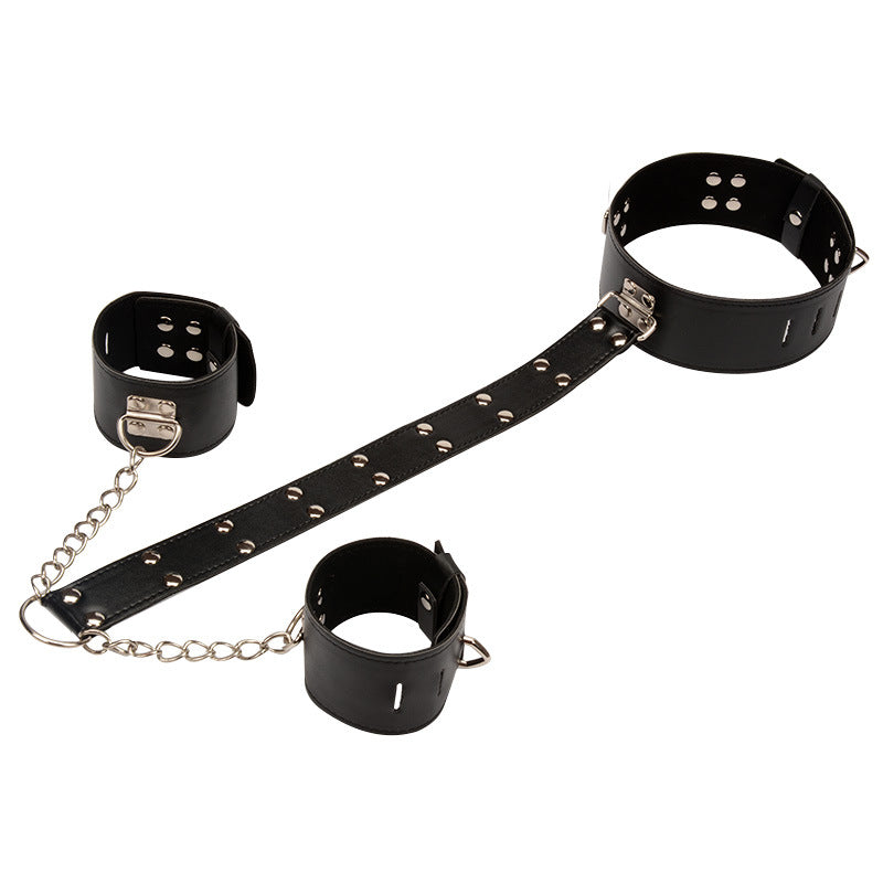 3in1 BDSM Collar & Handcuffs Binding Strap Bondage Kit - Black