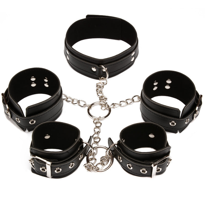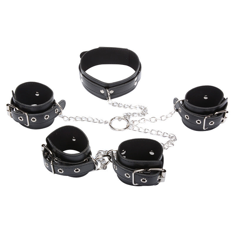 Collar + Handcuffs + Arm Cuffs (design for Back&Arm restraint, not for leg restraint.)