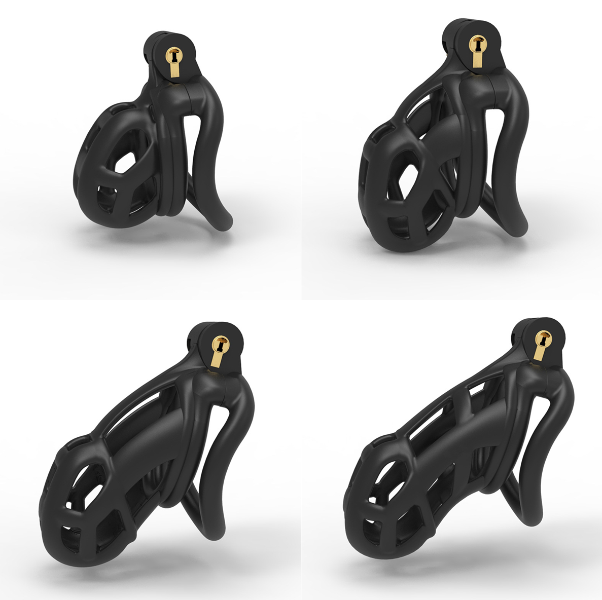 This chastity cage is perfect for enhancing sissy play, sissy training, humiliation fetishes, or simply for boner blocking. The cage is lightweight, made of nylon resin, and has a three-dimensional design. It weighs about 90-100g and comes in black color. The device is vented for cleanliness and features a wide vent at the tip for urination or ejaculation. The flat design of the rings is extremely comfortable and secure.