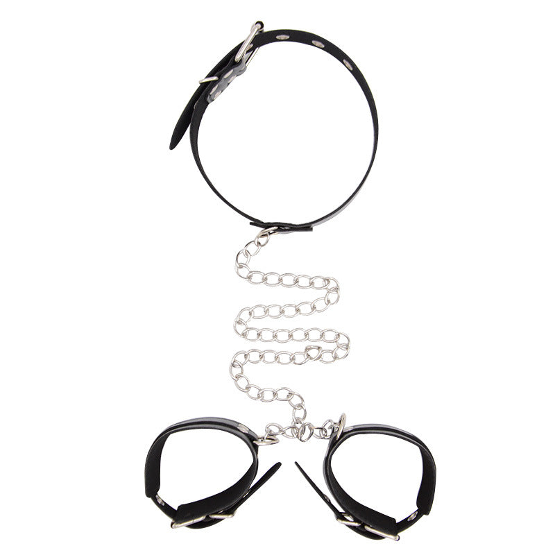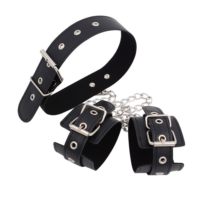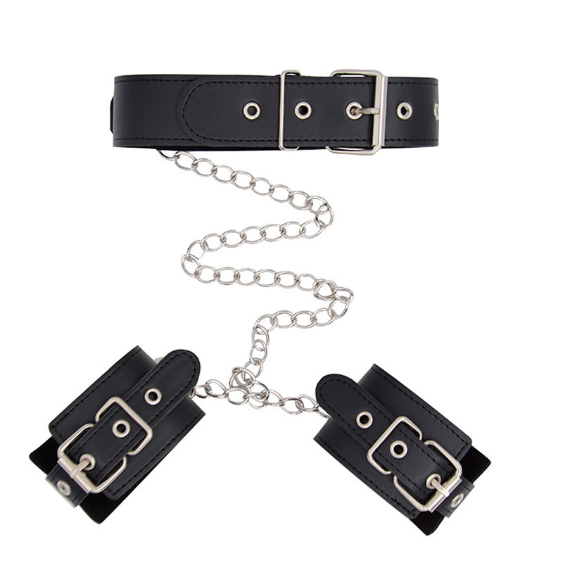 PU Leater Collar & Cuffs, Linked by Metal Chains