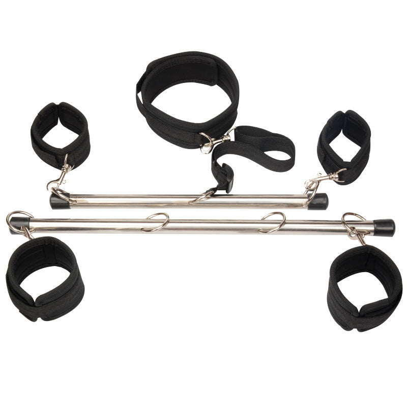 This is a BDSM Spreader Bar Kit, which includes a pair of handcuffs, a pair of handcuffs, two spreader bars, a neck set. You can play according to needs to combine a variety of actions, exciting.