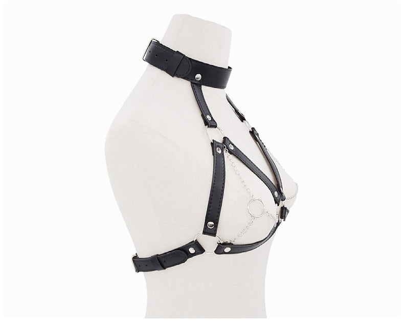 Just because you're naked, doesn't mean you can't dress up! Decorate your breasts for bedroom BDSM or a naughty party. This harness is made of genuine leather for the look and feels you're craving. Adjust the collar and underbust to the perfect fit and secure the buckles, letting the leather straps seductively outline your breasts. Immediately alter the atmosphere with this elegant and sexy accessory
