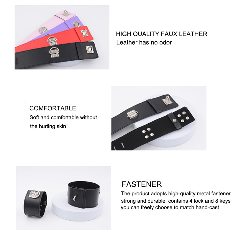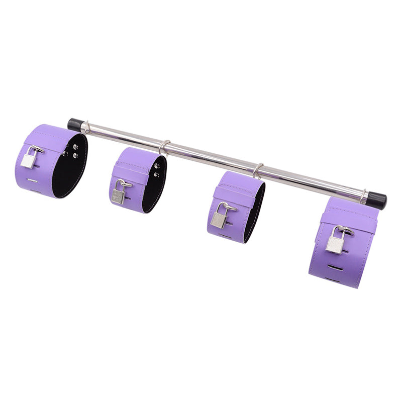 BDSM Spreader Bar Handcuffs & Ankle Cuffs Restraint Bondage Kit - Purple