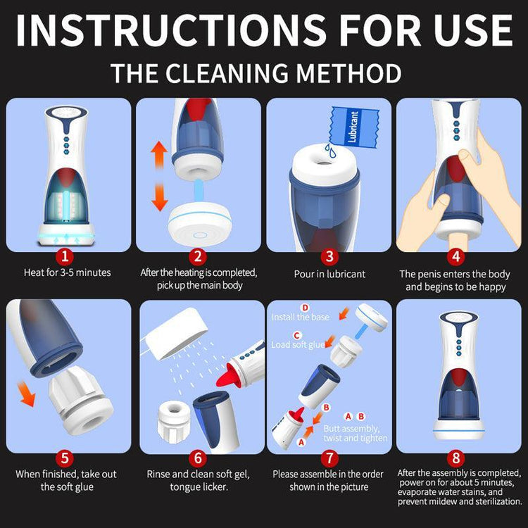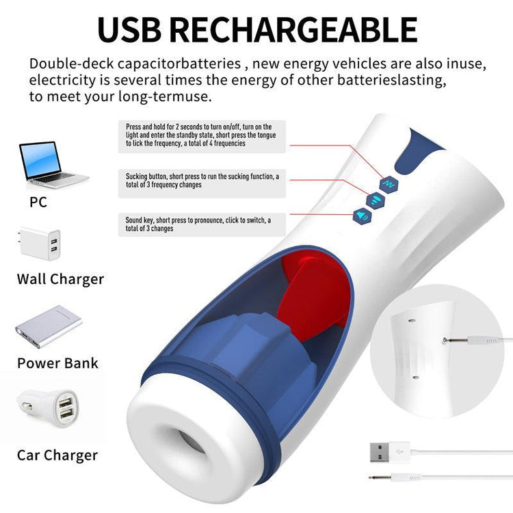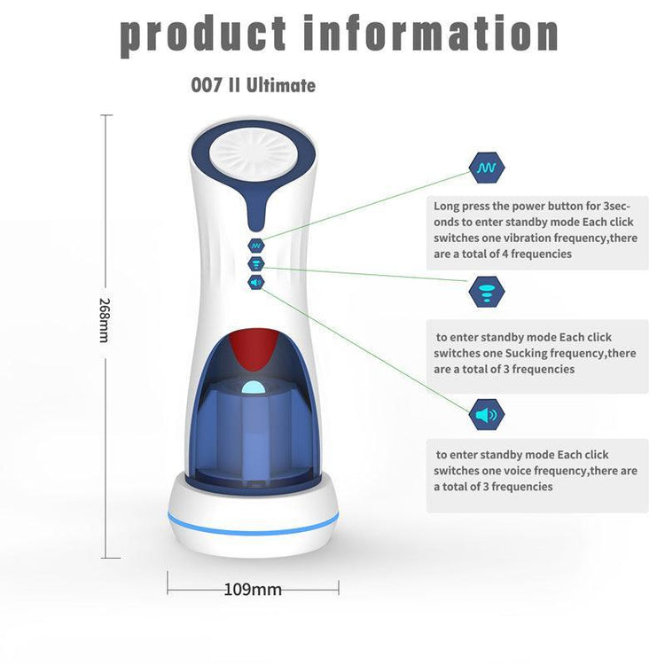 The 007 Suck masturbator is an incredible male stimulator in the shape of a flashlight with a stimulating tongue. It has 4 tongue stimulation modes and 3 super powerful suction modes, which when in contact with the penis simulate delicious oral sex together with penetration. The masturbator has high-quality recorded moans that make the experience much more realistic and pleasurable.
