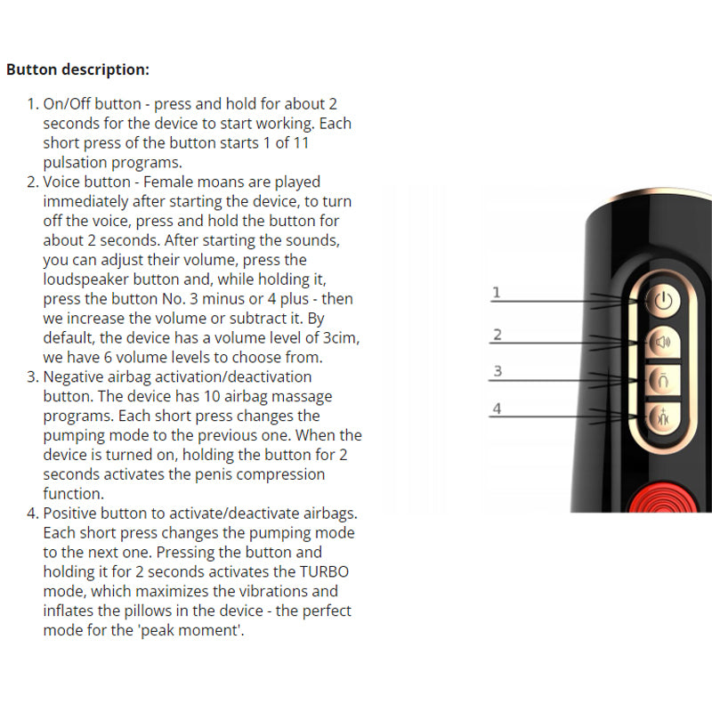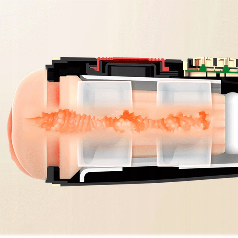 This Leten masturbator is an amazing squeeze suction masturbator with sound effects. The masturbator is a real sex machine for men, ideal for demanding men. The technologically advanced vagina will allow you to enjoy sensations comparable to sex with a real partner. The masturbator, thanks to two rows of self-inflating airbags, will allow you to enjoy sensations comparable to real sex with your partner. There are as many as 10 interesting penis-tightening programs at your disposal. The feelings are almost identical as if the woman was squeezing her muscles tightly enveloping the penis. Incredibly realistic 3D tunnel on a 1:1 scale is made of Cyberskin, a material deceptively similar to human skin to the touch. The inside of the scabbard was lined with all sorts of protrusions and folds.