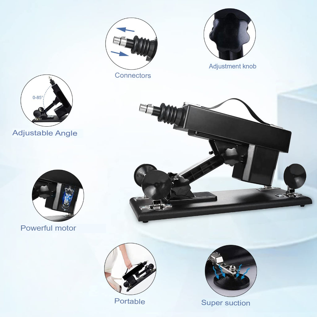 This state-of-the-art sex machine offers a completely hands-free experience with adjustable angle and height. The included realistic dildo boasts intelligent heating to a temperature of 42°C and 12 powerful vibrating modes, all adjustable to suit individual needs. Furthermore, the wire speed control knob allows you to tailor the experience to your desired rhythm, and the four suction cups ensure improved traction and performance.
