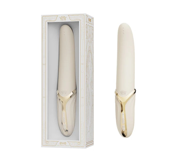 Zalo Eve Oral Pleasure Vibrator including a central that powers the realistic lapping function. A second vibrating motor located at the tip of the tongue further enhances sensation and allows for external and internal stimulation with a tapered tip to target erogenous zones.